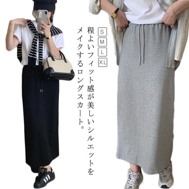 きれいめ スカート スウェットスカート ウエストゴム ロングスカート 春 夏 スウェットスカート 脚長効果 細見え 無地 マキシスウェットスカート 大きいサイズ 大人 レディース 部屋着 楽ちん