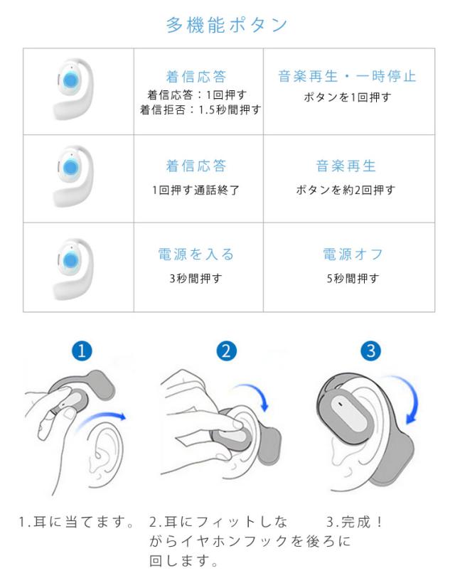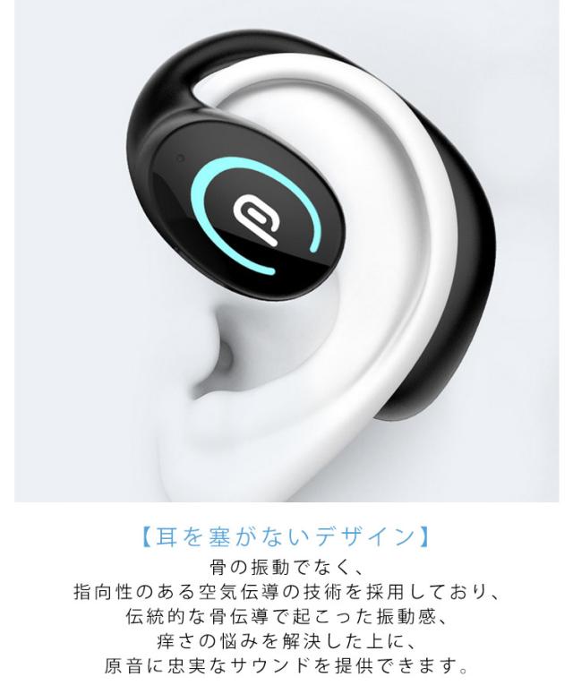 | 【最新版Bluetooth5.3】V5.3のBluetooth規格を採用しているので、より高速で安定した通信が実現でき、接続性は良くて、「音飛び」や「音切れ」を大幅に改善することができます。伝送距離も10Mまでに達します(障害物なし)。 【10時間連続使用可能】高性能リチウムバッテリ内蔵のBluetooth イヤホン、通勤&通学をより楽しい時間に。 【耳を塞がないデザイン】骨の振動でなく、指向性のある空気伝導の技術を採用しており、伝統的な骨伝導で起こった振動感、痒さの悩みを解決した上に、原音に忠実なサウンドを提供できます。耳を塞がないデザインであるため、アウトドアスポーツをするときに、通話/音楽聞きながらでも周りの車の音やサイレンなどをしっかり聞き取れ、周囲の危険も素早く察知できます。快適さと安全性を追求している空気伝導式ワイヤレスイヤホンです。 | |