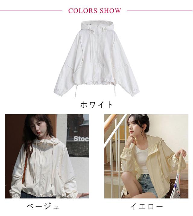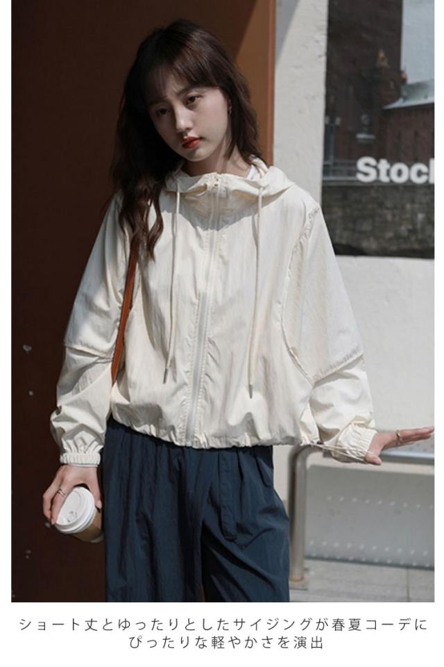 夏 パーカー ジャケット ブルゾン ライトアウター 長袖 おしゃれ 春 ショート丈 レディース 薄手 前開き 撥水 涼しい 紫外線対策 フード付き コート ラッシュガード 羽織り uvカット 無地 体型カバー ゆったり ジップアップパーカー マウンテンパーカー 日焼け防止