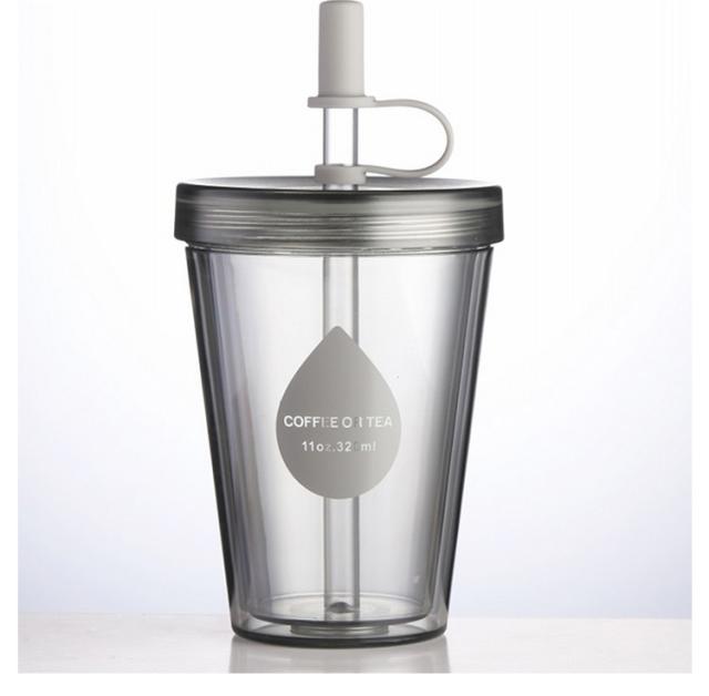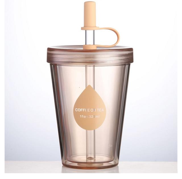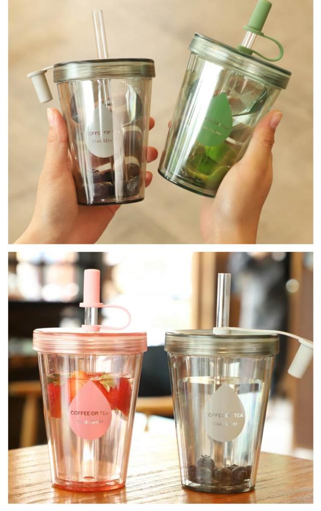 ストロータンブラー 透明 2層構造 直飲み ストロー 320ml ストローカバー付き 再利用可能 おしゃれ コーヒーカップ 520ml 大容量 コップ カップ 漏れ防止 携帯用 漏れない 420ml 蓋付き 透明ストロー マグカップ コーヒー ジュース シンプル 男女兼用