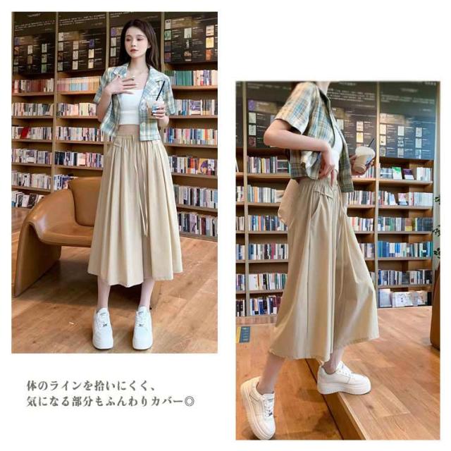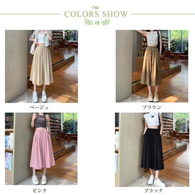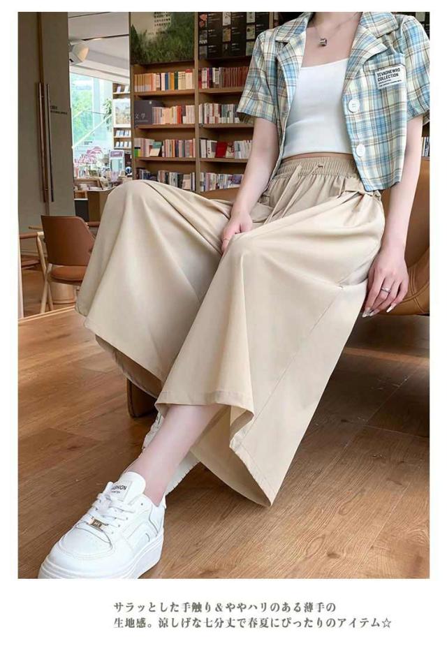 送料無料 送料無料 ワイド ワイドパンツ クロップドパンツ ガウチョパンツ パンツ スカンツ スカーチョ コットン 七分丈 キュロット ガウチョ スカート風 レディース ウエストゴム 体型カバー ゆったり カジュアル シンプル