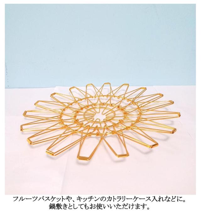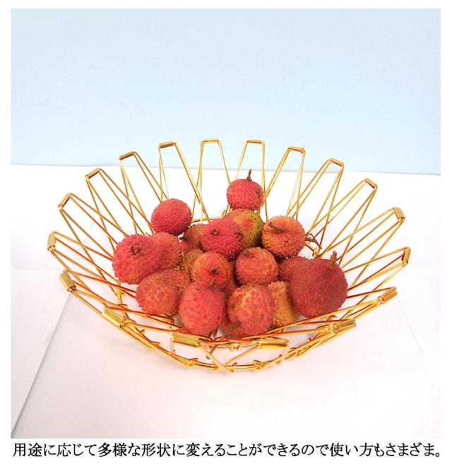 ディスプレイ フルーツ バスケット ワイヤーバスケット ワイヤー 収納バスケット ステンレス おしゃれ フルーツバスケット ステンレスバスケット 金 銀 ワイヤーボウル 変形 丸型 折りたたみ式 小物入れ 黒 鍋敷き 北欧 雑貨 スチール