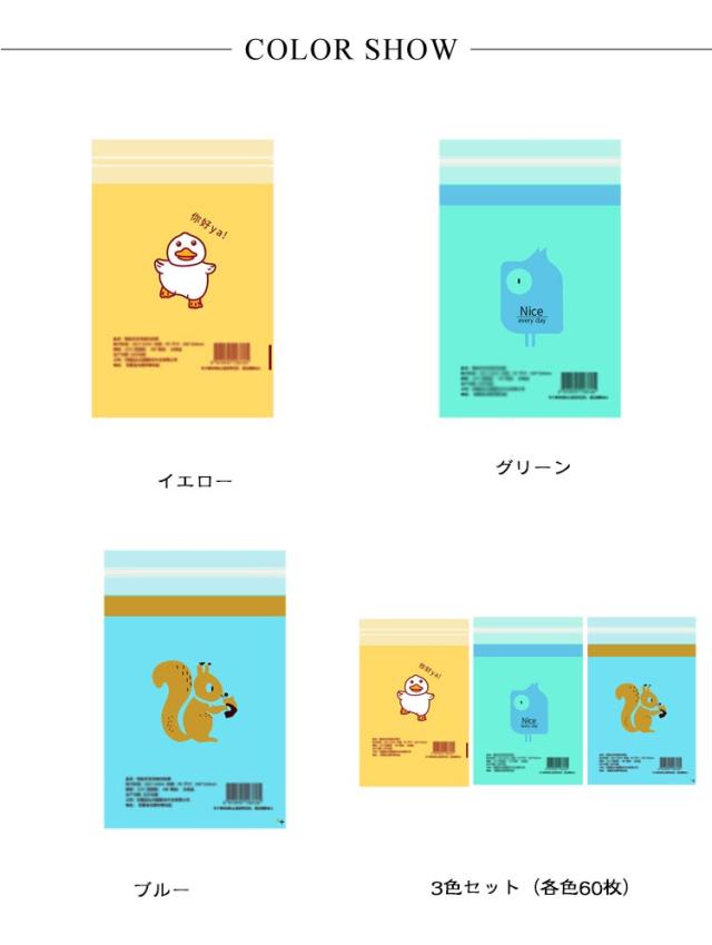 | 色 | イエロー グリーン ブルー 3色セット(各色60枚) |