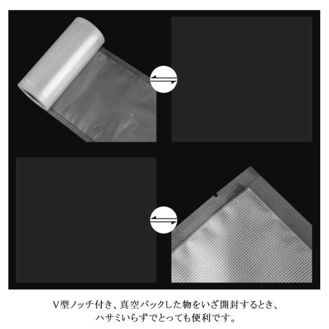 | 真空バッグ 100枚セット PA層が酸素などのガスの侵入を防ぎ、真空状態を長期間保つことができます。長期保存が必要な製品に最適です。 高温に耐える構造で、真空調理などの高温処理が必要な場面でも安心して使用できます。 V型ノッチ付き、真空パックした物をいざ開封するとき、ハサミいらずでとっても便利です。 | |