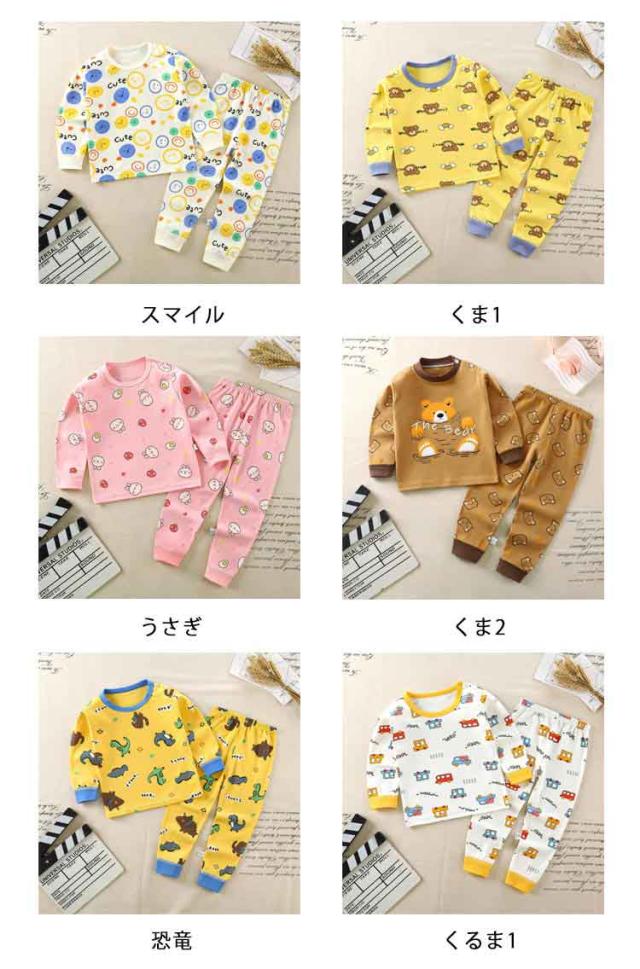 パジャマ キッズ ベビー 子供 長袖 男の子 女の子 おしゃれ かわいい 綿 15柄 コットン 韓国 ルームウェア 子供服 上下セット 春 夏 秋 冬 恐竜 くま うさぎ 車 ピンク 80 90 100 110 120 130