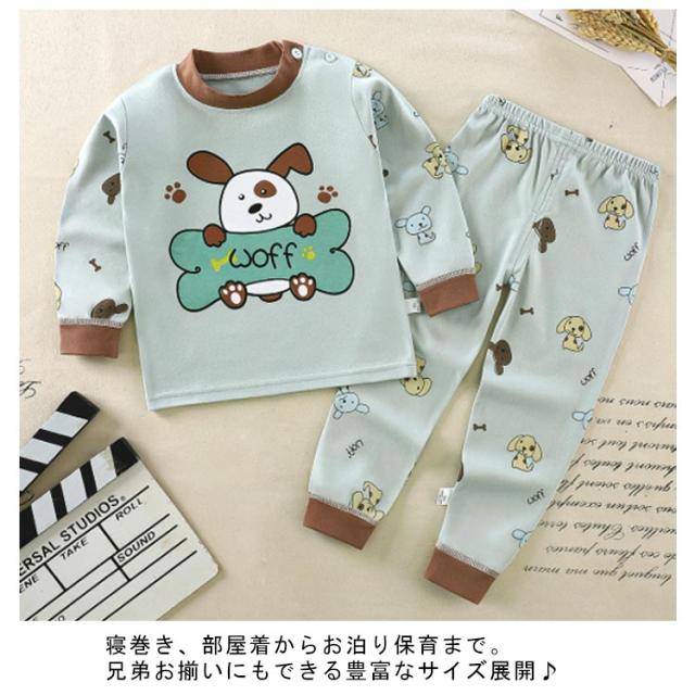 | キッズパジャマ 70~130cm 【可愛いイラストのプリント柄】 毎日の就寝時に!長袖 長ズボンがセットアップになった可愛いパジャマ登場! 寝巻き、部屋着からお泊り保育まで。兄弟お揃いにもできる豊富なサイズ展開♪ 【便利なリブ仕様】 袖口と裾口がリブなのでずり落ちにくく、寝ている時のめくれ上がり防止に 少し大きめでも折り返して長く着ることもできちゃいます 【コットンにこだわりました】 程よい厚みなので春夏、秋冬問わずオールシーズン使えます 【首元にボタンつき】 トップスの首元にはスナップボタンつき。かぶりのクルーネックなので着脱もスムーズです | |