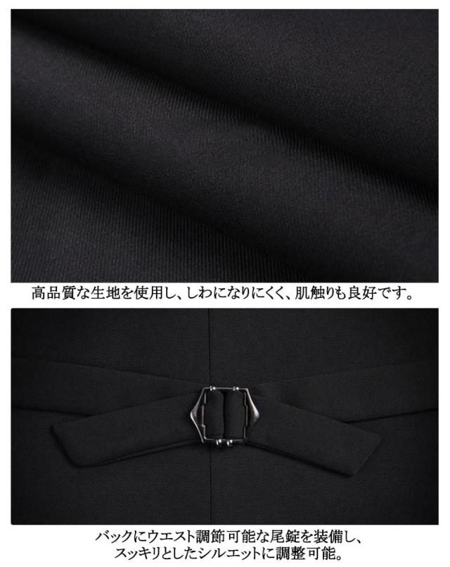 | お手入れ簡単!シンプルで落ち着いた雰囲気のスーツベスト。 高品質な生地を使用し、しわになりにくく、肌触りも良好です。 バックにウエスト調節可能な尾錠を装備し、スッキリとしたシルエットに調整可能。 シャツの上に羽織った際やジャケットのインナーに着用された際に綺麗に見えるVラインのパターンをとっています。 フォーマルからカジュアルまで幅広く着回せるアイテムです。 | |
