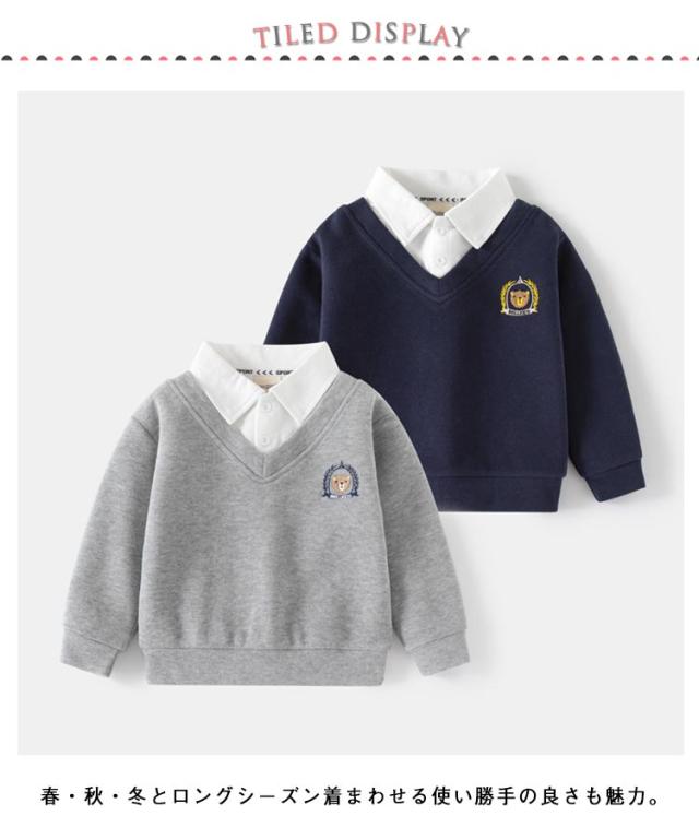シャツ トップス 男の子 女の子 ベビー キッズ フォーマル フェイクレイヤード 襟付き シャツ 重ね着風 長袖 子供服 シャツ 子供用 レイヤード風 通学 トレーナー 春秋 ギフト プレゼント 通園 キッズ お出かけ 入学式 卒園式 90 100 110 120
