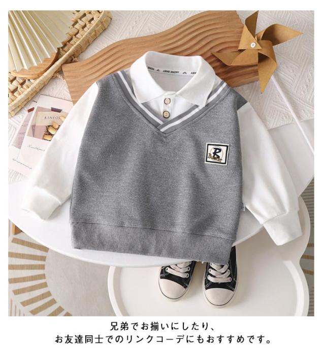 トレーナー 長袖 重ね着風 男の子 子供服 春 秋 トップス 小学生 シャツ おしゃれ フォーマル ポロシャツ スウェット ジュニア キッズ レイヤード風 ベビー 保育園 幼稚園 入学式 90 100 110 120 130 140 150