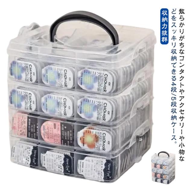 カラコン 蓋付き 仕切り コンタクト収納ケース ワンデー コンタクト 収納ケース 4段/5段 クリア 透明 収納ボックス 小物入れ コンタクト収納ケース アクセサリー 収納 ケース 小物収納 大容量 コンタクトケース 使い捨てコンタクトレンズ収納 持ち運び 持ち手付き