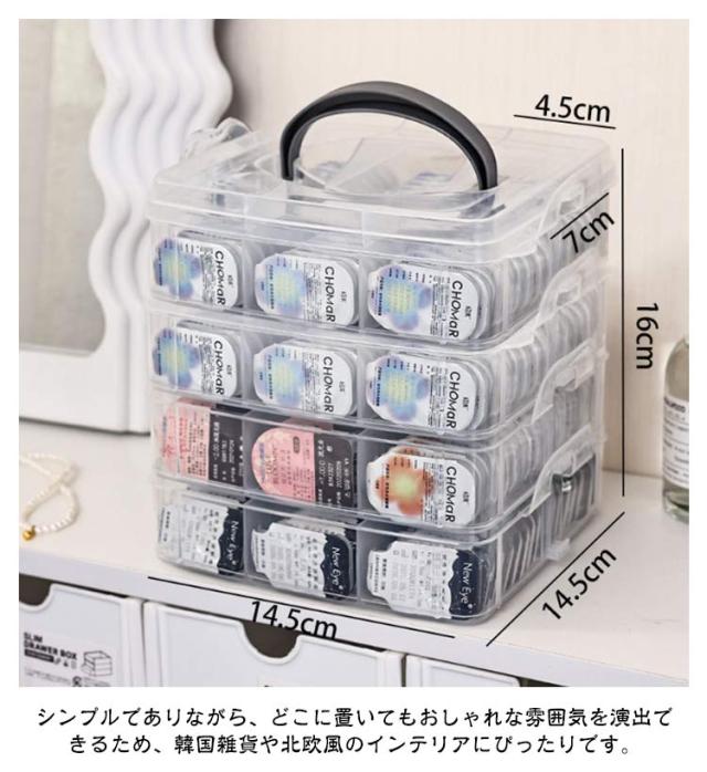 | 散らかりがちなコンタクトやアクセサリーや小物などをスッキリ収納できる4段/5段収納ケース。 収納力抜群な上にで、クリアタイプなのでストックの数も一目でわかるのでとても便利です。 蓋付でホコリや汚れもガード! キッチン、バスルーム、デスク周りなど、さまざまな場所で活躍する多機能なケースでコンタクトはもちろん、メイク道具などの小物の整理にも役立ちます。 シンプルでありながら、どこに置いてもおしゃれな雰囲気を演出できるため、韓国雑貨や北欧風のインテリアにぴったりです。 また、スッキリとしたデザインで、どんな場所にも馴染みやすく、デスクや洗面などの限られたスペースを効率的に活用することができます。 | |
