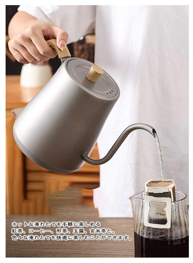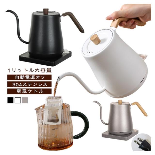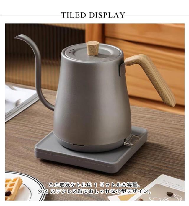 細口 1L 自動電源オフ お湯 1リットル 電気ケトル ケトル 304ステンレス 電気ポット 大容量 小型 ステンレス 電気ケトル キッチン家電 空焚き防止 グースネックケトル コーヒーケトル ドリップポット ドリップケトル