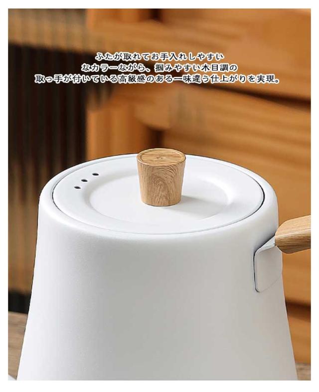 | 1リットル大容量 自動電源オフ 304ステンレス 電気ケトル この電気ケトルは 1 リットル大容量、 304 ステンレス製でおしゃれな小型デザイン。 自動電源オフと空焚き防止機能搭載で、安全便利。 キッチンに欠かせないアイテムです。 おすすめのポイント ●スイッチひとつでお湯が沸かせる ●湯量やスピードをコントロールしやすい注ぎ口 ●たっぷり1000ML大容量 ●わずか4分間で100℃まで速やかに沸かせる ●場所をとらず、卓上で使えるコンパクトさ ●安心な空焚き防止機能 ホットな淹れたてを手軽に楽しめる 紅茶、コーヒー、煎茶、玉露、玄米茶と、色々な淹れたてを快適に楽しむことができます。 なめらかな注ぎを実現する注ぎ口 お湯が垂直に落とせることで、 湯量調節もしやすく、コーヒーのハンドドリップにも最適! 1~2人用に使いやすい1リットル キッチンやテーブルで使い勝手の良いコンパクトな1000MLのサイズ ふたが取れてお手入れしやすい なカラーながら、掴みやすい木目調の取っ手が付いている高級感のある一味違う仕上がりを実現。 人間工学に基づいた握りやすいハンドル形状 ハンドル部分も手にしっくり馴染む形状。 耐久性・堅牢性を兼ね備えたメタルボディ ステンレスに塗装をほどこした美しい質感と、耐久性を兼ね備えています。 安心な空焚き防止機能 ケトル内が空または水が少ない状態になったら、自動的に電源が切れて、空だきを防止します。 モダンで洗練されたデザインで、お部屋に馴染みやすいマットなカラー展開が魅力。 | |