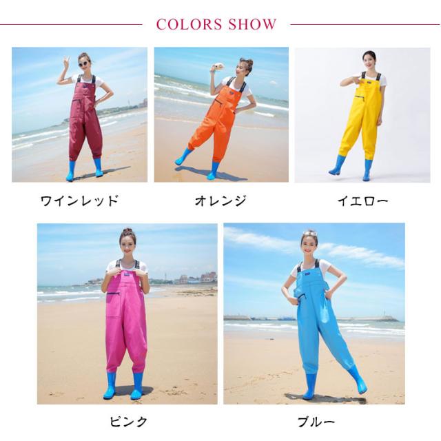 | ポケット付きシンプルなチェストハイウェーダー。【全7色】 足から胸までを覆う部分に防水性・撥水性の高いPVC生地が使われており、履くだけで体が濡れるのをしっかり防ぐことができます。 チェストハイ型の完全防水ウェーダーは、サーフや河川の渓流、本流域の釣りで大活躍です。 PVC加工で防水性・撥水性の高い生地が使われており、水に濡れないのはもちろんですが、水温で奪われる体温の低下スピードを遅くします。 靴底には耐摩耗性の高い厚めのソールを採用し、滑りにくく安定感抜群。水中の硬い石やぬかるみでも安心して遊べる設計です。丈夫な素材で、長期間お使いいただけます。 前面にはファスナー付きのポケットを搭載。スマホや小物を収納できるため、作業の際に非常に便利。アウトドアでも必要な物をすぐに取り出せます。 ブーツとズボンは縫い合わせるのではなく、一体化でつくられており、水漏れはしません。通気性もよいこの胴長ウェーダーをはき、渓流に入っても体を乾燥的に保ちます。 様々な場所で活躍:川釣り、潮干狩り、水産加工場、魚市場での現場作業着に、また、田植えや草刈りなど農作業や雪掻き。海に川に湖に!釣りをするなら必須アイテム! | |
