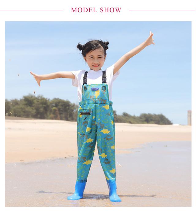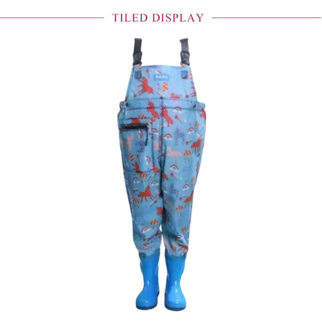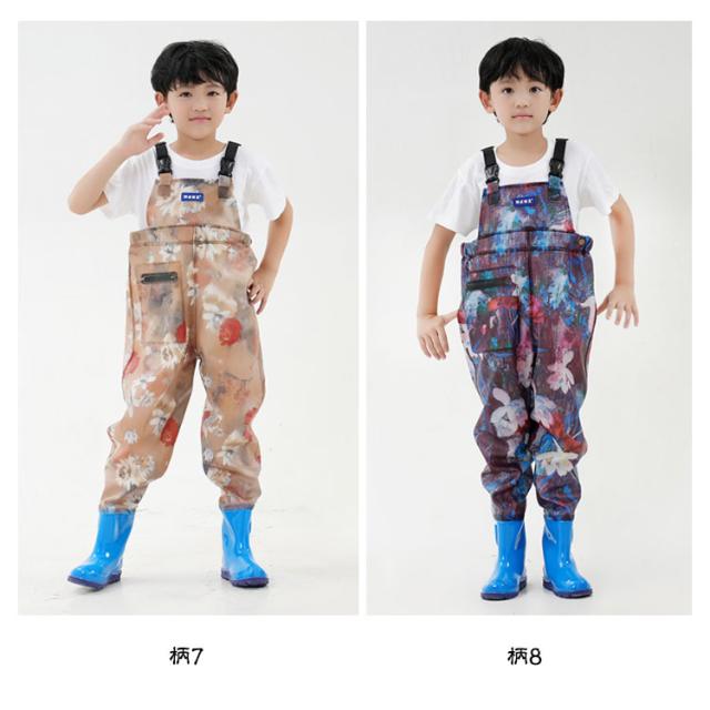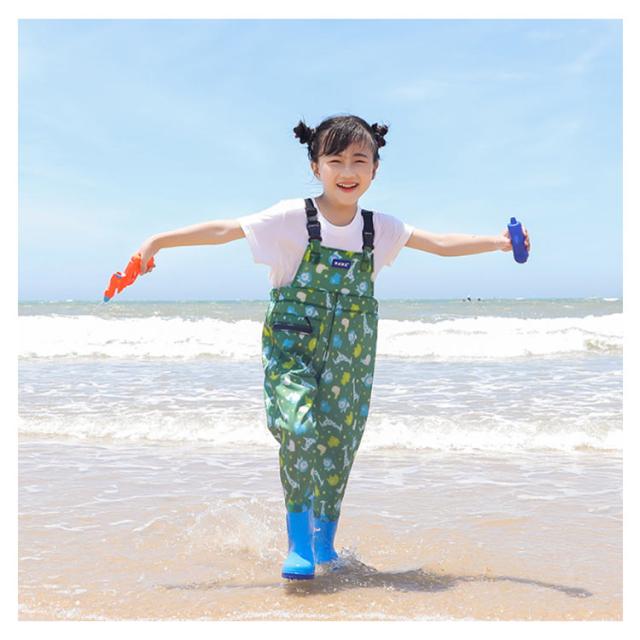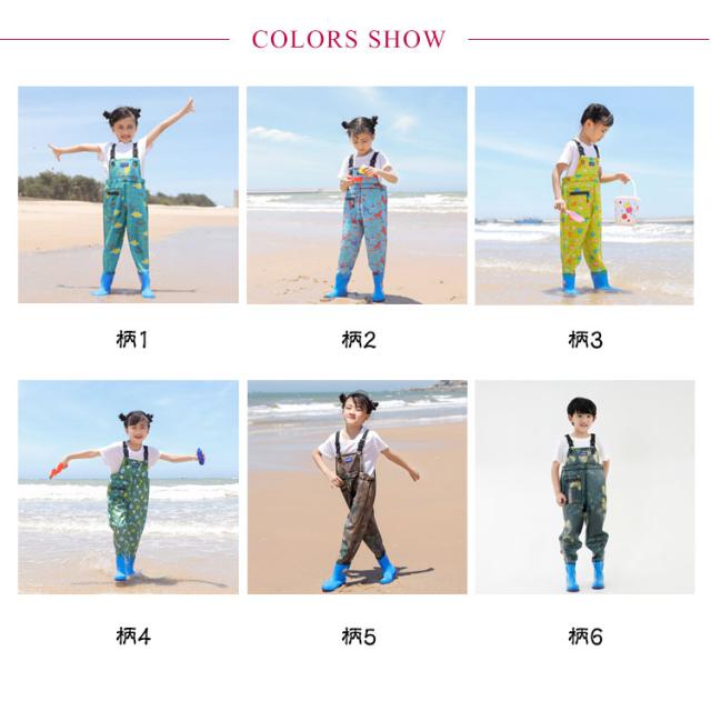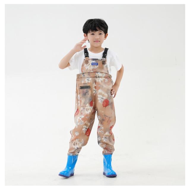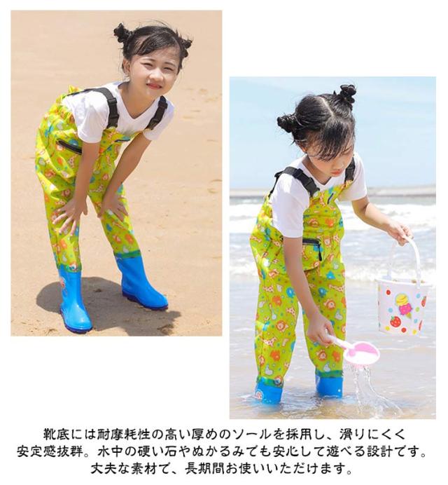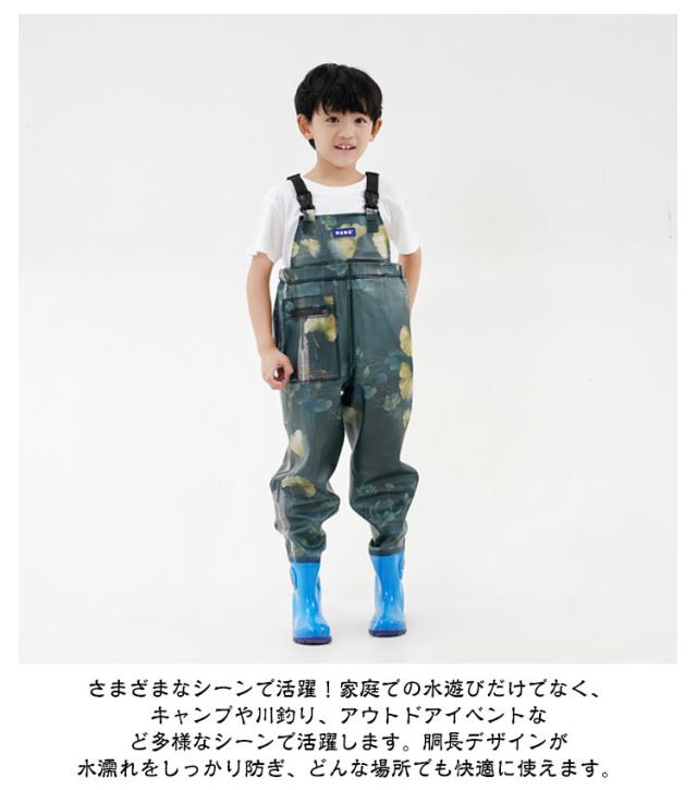 長靴付き 子供用 ブーツ付き 海 田んぼ 胴長 レインパンツ ウェーダー 胴付き長靴 総柄 水遊び 男の子 女の子 かわいい ウェーダー 川 長靴付き プレイウェア 遊び 釣り 潮干狩り お砂場着 防水 軽量 ポケット付き 雨の日 梅雨 通学 雨具 【送料無料】
