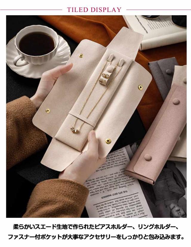 携帯用ポーチ 折りたたみ式 アクセサリーケース ジュエリーケース 指輪収納 ピアス収納 ネックレス入れ 携帯用 ピアスケース 紛失防止 保護 トラベル リングケース ジュエリーポーチ 旅行 携帯用ケース ピンク アイボリー
