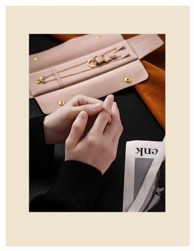 | 大切なジュエリーを守るための「ジュエリーポーチ」が登場! 軽量かつコンパクトサイズなポーチは旅行や日常での移動にぴったり。 柔らかいスエード生地で作られたピアスホルダー、リングホルダー、ファスナー付ポケットが大事なアクセサリーをしっかりと包み込みます。 また、ポーチの内側にはピアス用の穴やリングホルダーがあり、アクセサリーが絡まることなく整理整頓できます。 旅行先でも、いつでもお気に入りのアクセサリーを安全に持ち運べます。 他にも、スポーツジムや温泉など、ジュエリーを外す際に使用すれば、バックの中で迷子になったり、置き忘れの心配もありません♪ | |