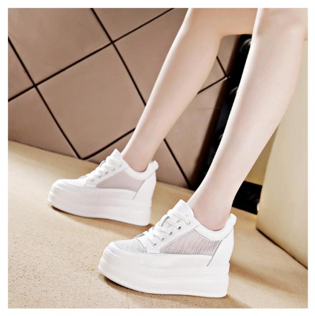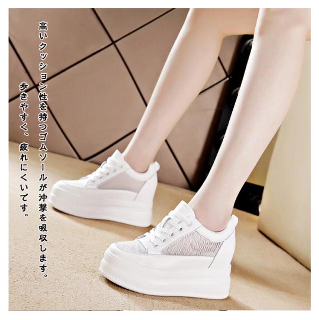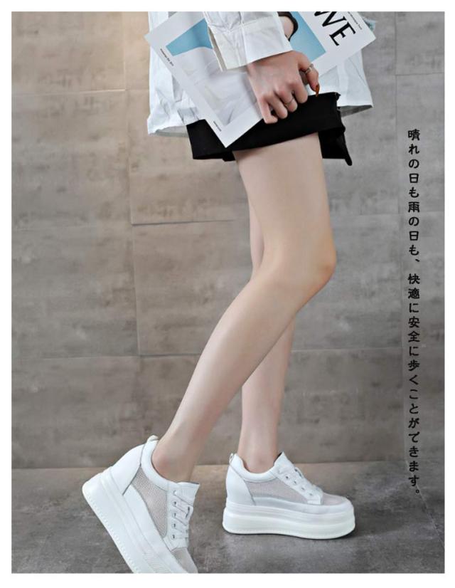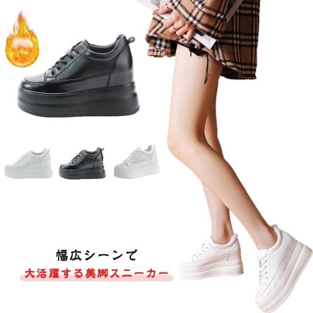 | 幅広シーンで大活躍する美脚スニーカー 見た目がおしゃれでかわいい、女性に超人気の厚底スニーカーです。厚底シューズは約9センチの厚底で、靴底が厚くて、適度に体格比を高めることができます。厚底スニーカーは美脚効果を実現し、自信を強めます。 9cm厚の靴底で、雨などの水の侵入をしっかり防いでくれます!長時間の浸水などにはご注意ください。さらに靴底には特殊な加工を施しており、滑りにくて耐摩耗性も抜群です。晴れの日も雨の日も、快適に安全に歩くことができます。 高いクッション性を持つゴムソールが沖撃を吸収します。歩きやすく、疲れにくいです。足にフィットするデザインで、長時間歩いても足が痛くないカジュアルなスニーカーです。 シンプルなデザインなので年齢を問わず、大人の女性から少女まで幅広い年齢層にご利用いただけます。 | |