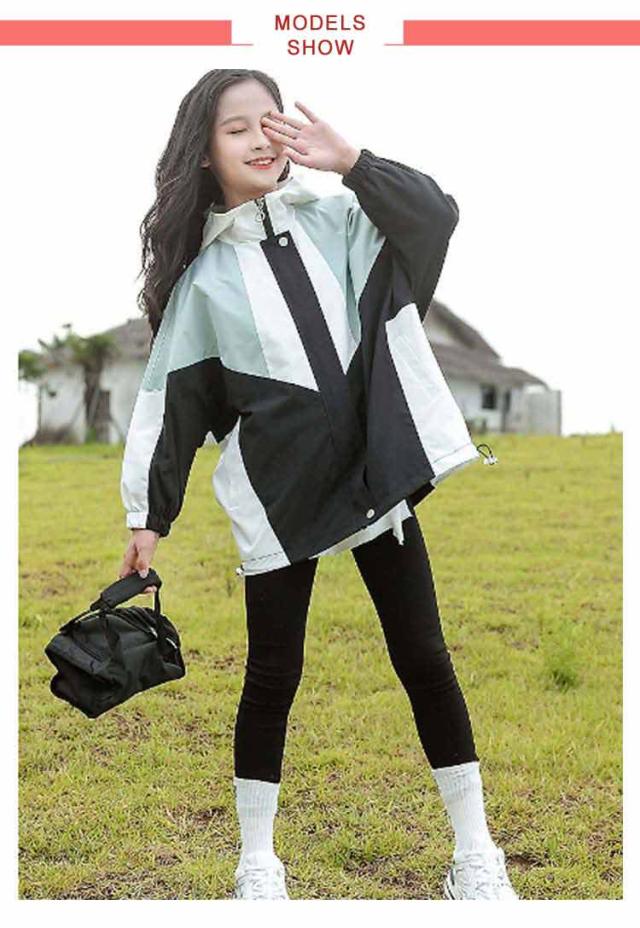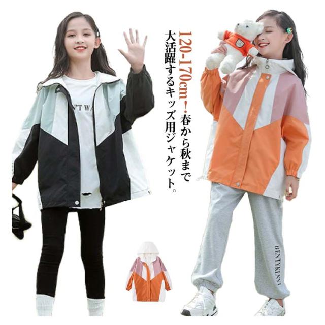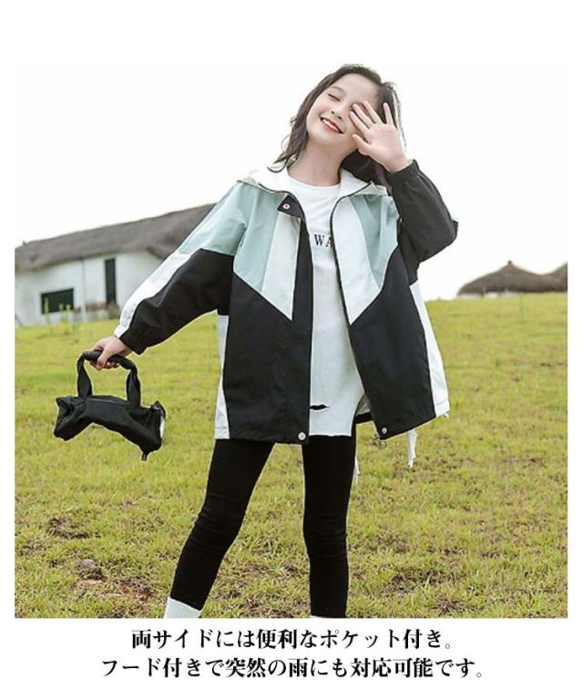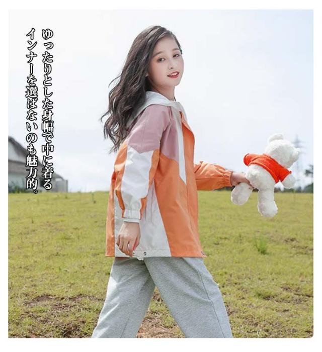 ウィンドブレーカー キッズ マウンテンパーカー 女の子 春ジャケット ジャケット フード付き お洒落 春コート アウター トップス 秋物 防風 配色 ライトアウター 薄手 ジップアップ 切り替え マウンテンパーカー ブルゾン ガールズ ジャンパー カジュアル 春 秋 送料無料