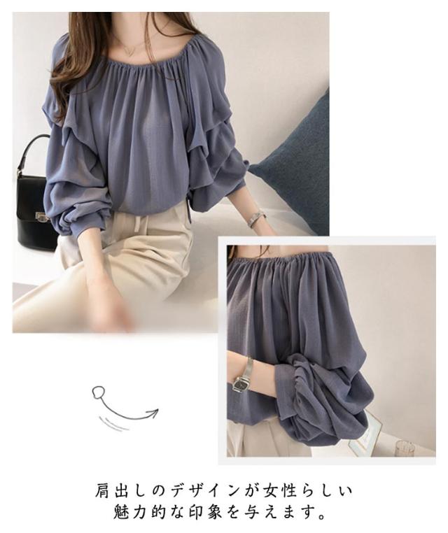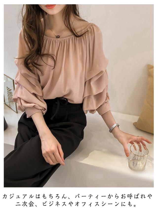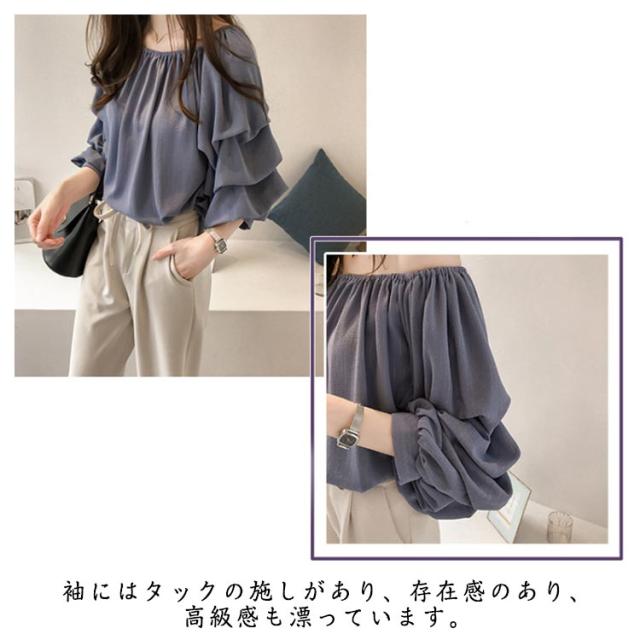 ボリューム袖 シャツ パフ袖 ブラウス タック 春夏 クルーネック 7袖丈 2way スリーブ 肩見せ シフォンシャツ セクシー ブラウス バルーンスリーブ ブラウス オフショルブラウス シワになりにくい