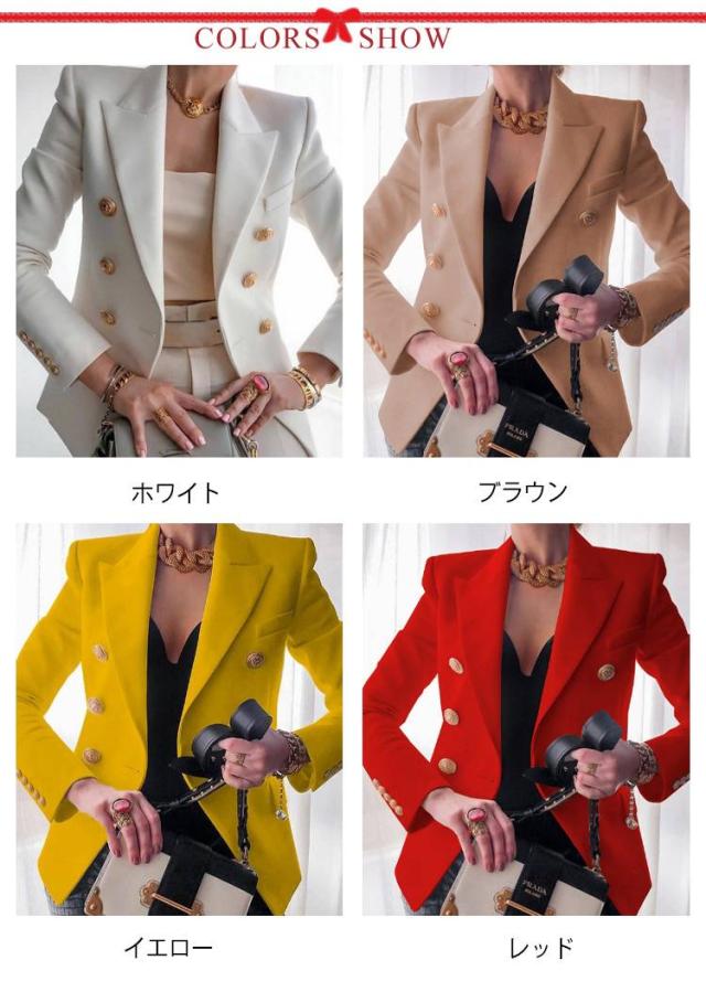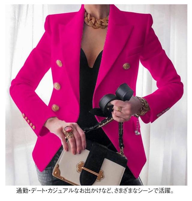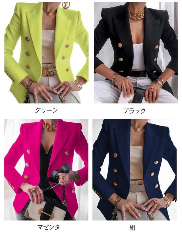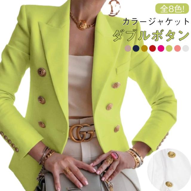 ダブルボタン レディース 春ジャケット 春ジャケット テーラードジャケット アウター ショート丈 春服 カラージャケット 通勤 オフィス 30代 40代 秋服