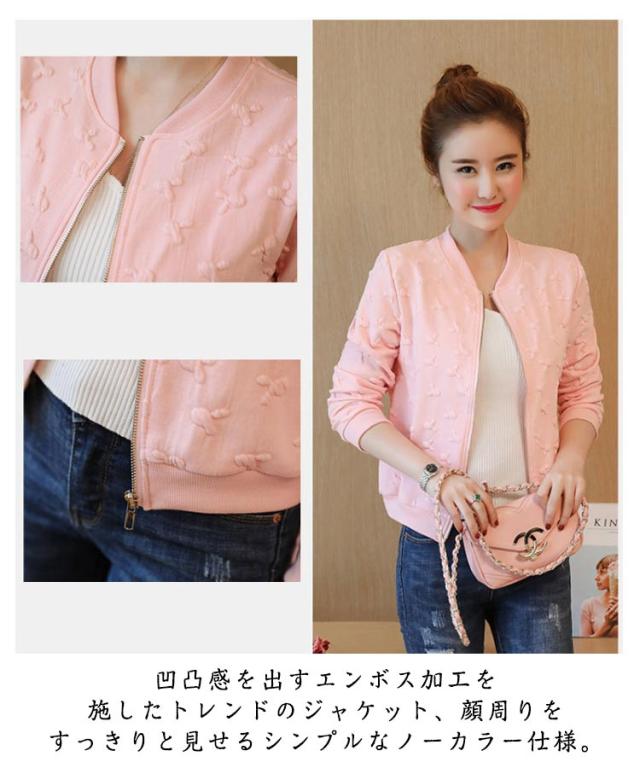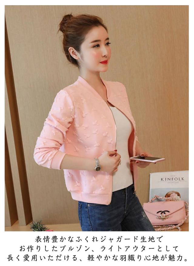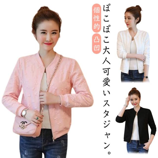 ジャケット ふくれジャガード エンボスブルゾン アウター ブルゾン ライトアウター スタジャン レディース 凸凹 個性的 キレイめ カジュアル 華奢見せ 可愛い 楽チン 上着 ショート丈