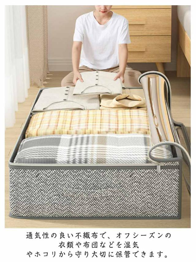 不織布 ベッド下収納ケース ベッド下収納ケース ベッド下収納ボックス 衣類収納 布団収納ケース 特大 布団ケース 収納ボックス 透明窓 敷き布団用 布 衣替え 2個セット 防塵防カビ 湿気防止 防虫 折り畳み 持ち手付