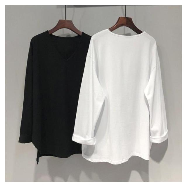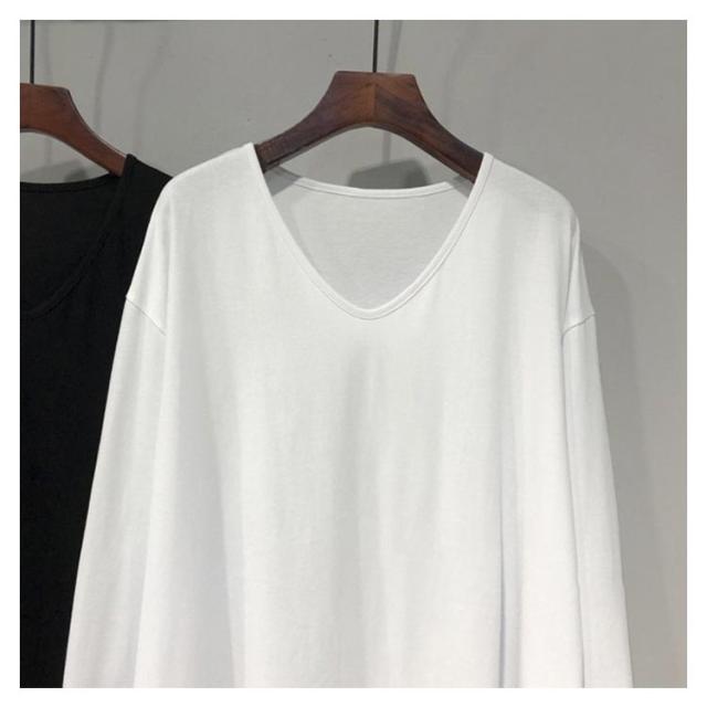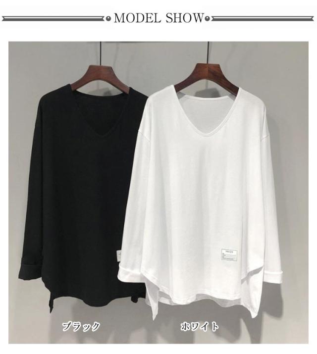 ロンT 大きいサイズ 体型カバー レイヤード ラウンドカットソー トップス レディース ロンT Tシャツ 長袖 チュニック ロンT ロング 無地 重ね着 クルーネック モックネック スリット 長め vネック 黒 白 グレー 秋