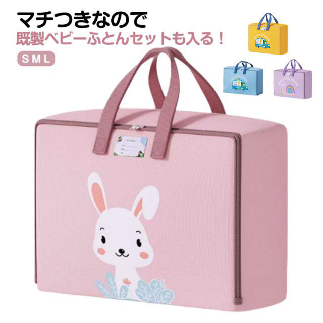 | マチつきなので既製ベビーふとんセットも入る! 撥水加工を施しており、少々の雨や雪なら安心。 又、万が一汚れた場合でも、手洗いにてお洗濯が出来ますので安心です。 標準的なお昼寝布団セットなら余裕で入るサイズに成っております。 折りたたんだり、くるくる巻けるので、園のロッカー等に保管しやすいです。 ご旅行や帰省時にもマルチに使用できるバッグです。 | |