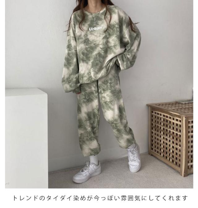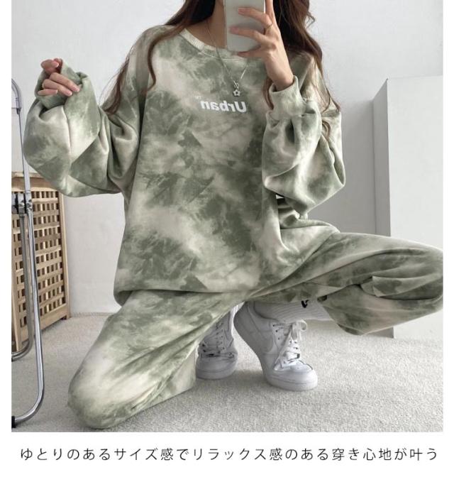 | M-3XL!タイダイ染めした、トレーナー・スウェットパンツ上下セット。 ゆとりのあるサイズ感でリラックス感のある穿き心地が叶う。 トレンドのタイダイ染めが今っぽい雰囲気にしてくれます。 ルームウェアやパジャマとしてはもちろん、近所へのお散歩やお出かけにも着用いただけるワンマイルウェアとしても活躍してくれます! セットではもちろん、上下別々でも使いやすく、コーディネートの幅が広がる嬉しいアイテムです。 | |