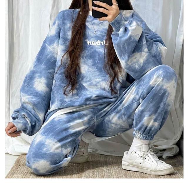 タイダイ染め 長袖 寝巻き ジャージ レディース スウェット セットアップ ルームウェア 部屋着 スウェットパンツ ナイトウェア トレーナー トレーナー ゆったり 上下セット スエット ジャージ 秋 春 大きいサイズ パジャマ ダンス衣装 スポーツウエア