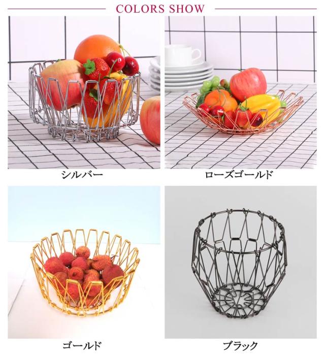 金 ワイヤーバスケット フルーツバスケット バスケット 鍋敷き フルーツ ステンレス ワイヤーボウル ステンレスバスケット 黒 収納バスケット 銀 ワイヤー おしゃれ 丸型 折りたたみ式 小物入れ ディスプレイ 変形 北欧 雑貨 スチール