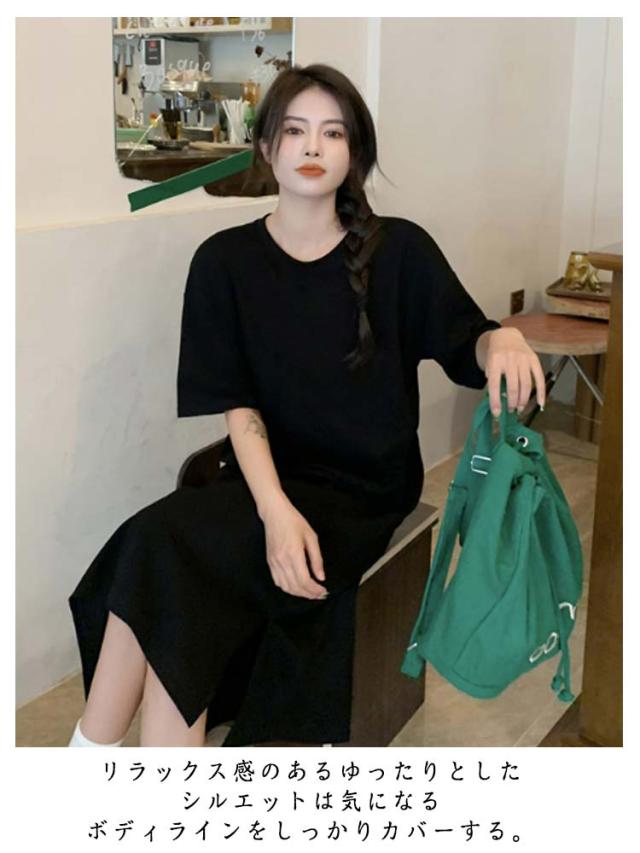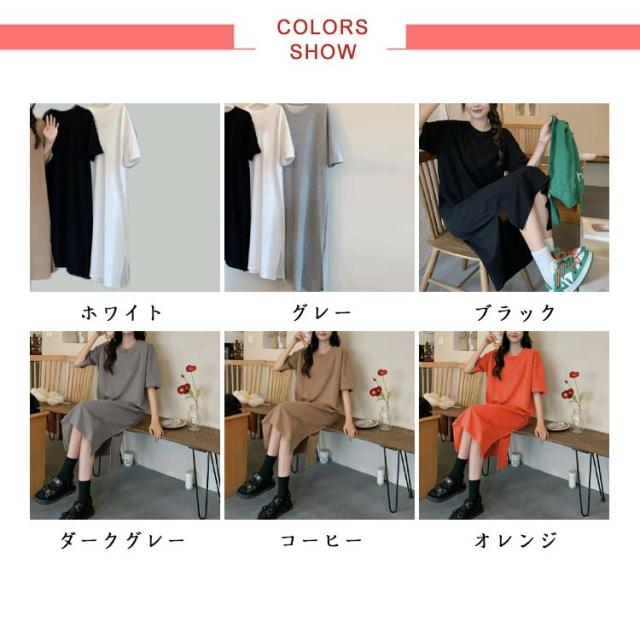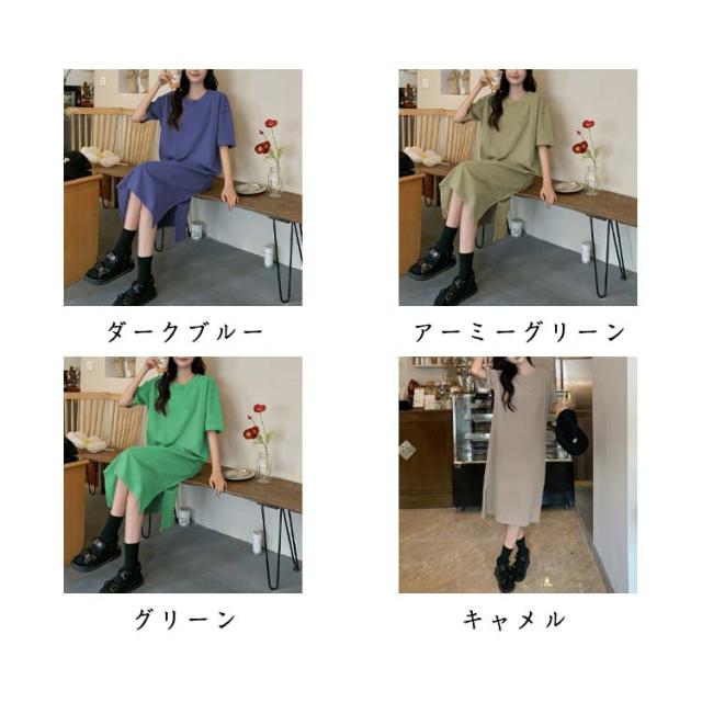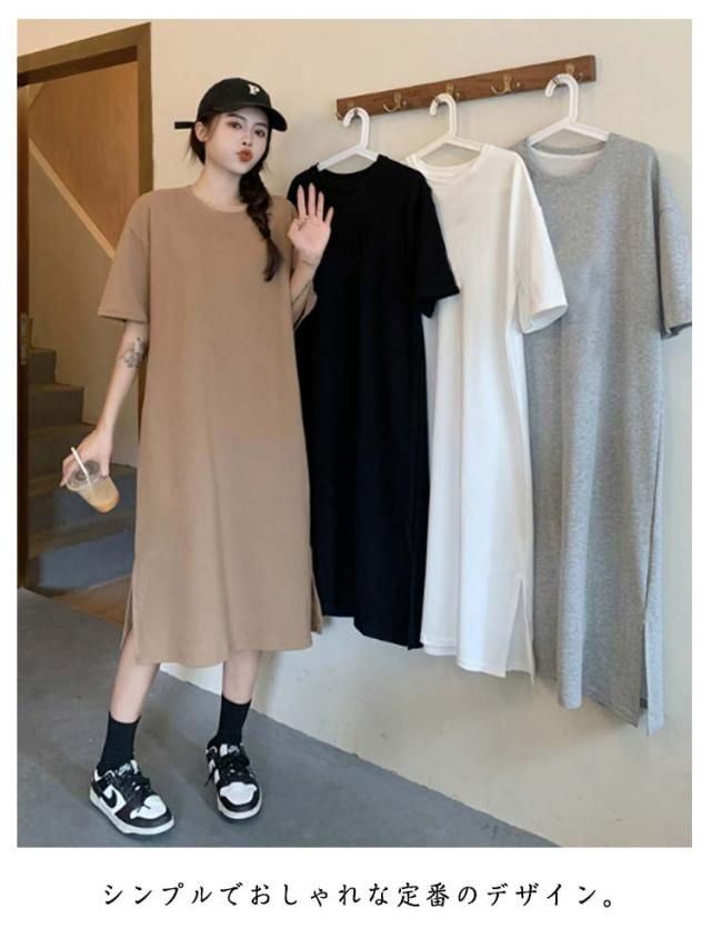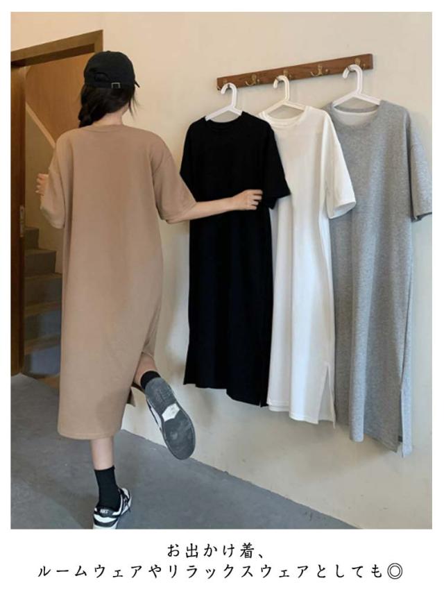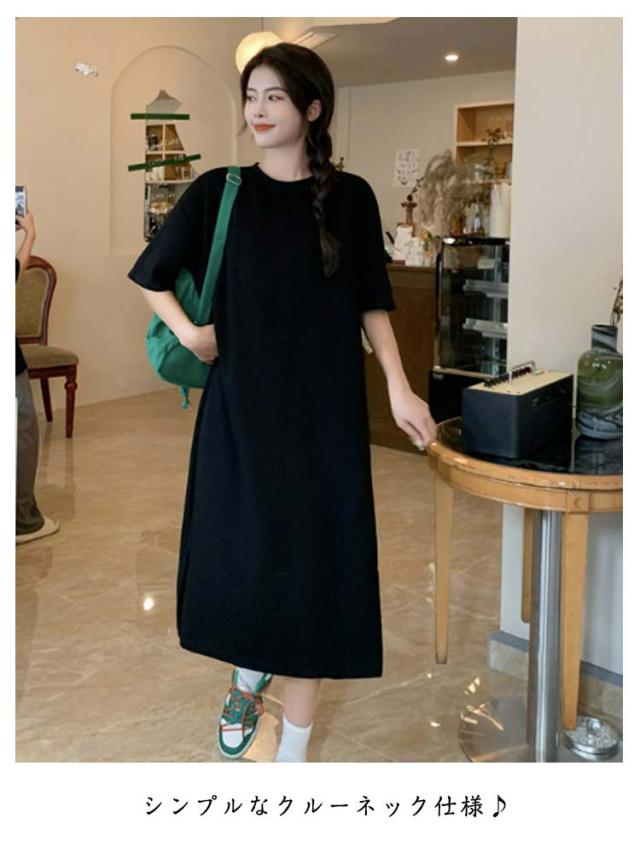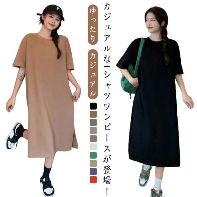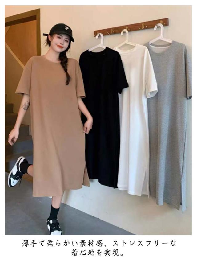 レディース ロング丈 秋 半袖 夏 部屋着 tシャツワンピ ワンピース スリット tシャツワンピース tシャツワンピース ロングワンピース 無地 シンプル ワンピ 春 夏 マキシ丈 クルーネック 丸首 ゆったり 体型カバー 大きいサイズ
