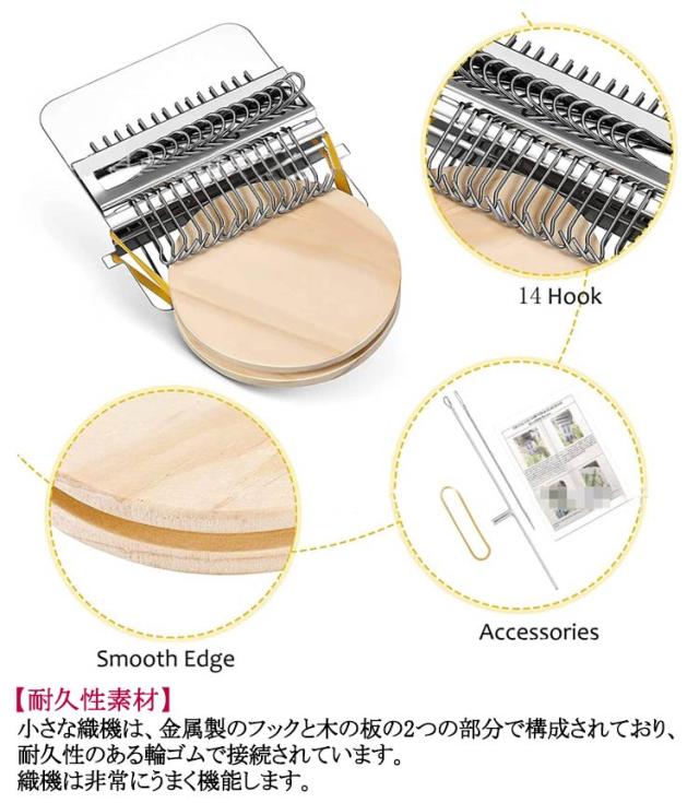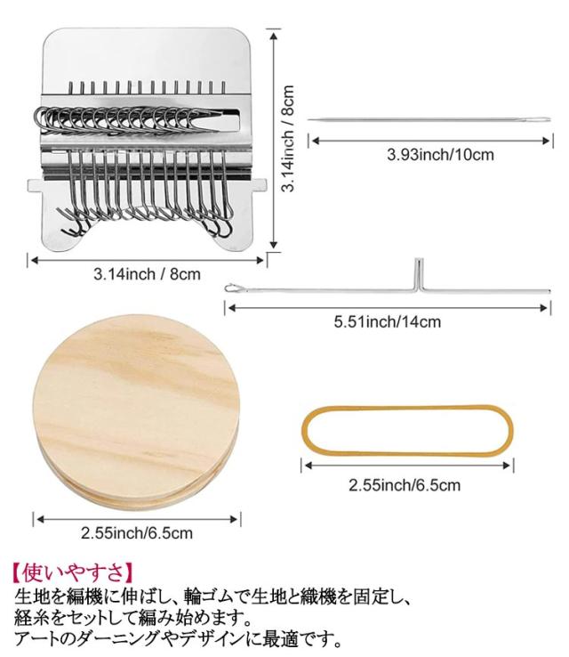 | ポータブル小型織機。 【耐久性素材】小さな織機は、金属製のフックと木の板の2つの部分で構成されており、耐久性のある輪ゴムで接続されています。織機は非常にうまく機能します。 【優れた修理】ダーニングマシンは、衣服の穴を修復する優れた機能を備えており、ステッチに興味深いパターンを作成できます。織機のミニルックはとてもクリエイティブです。 【使いやすさ】生地を編機に伸ばし、輪ゴムで生地と織機を固定し、経糸をセットして編み始めます。アートのダーニングやデザインに最適です。 【美しい作品を作る】この大胆なミニ織機は、クラフト愛好家のためにより美しい作品を作ることができます。編み物ツールはまた、子供の創造性と手と目の協調を高めることができます。 | |