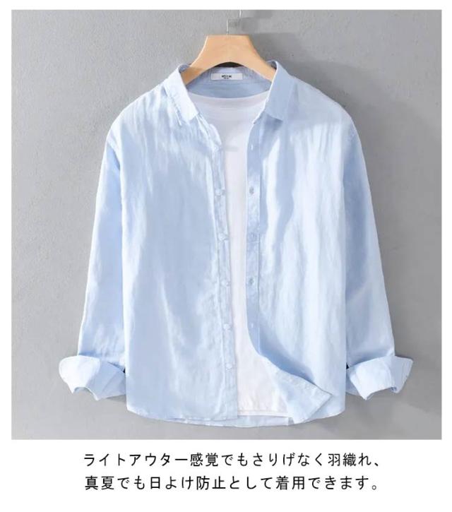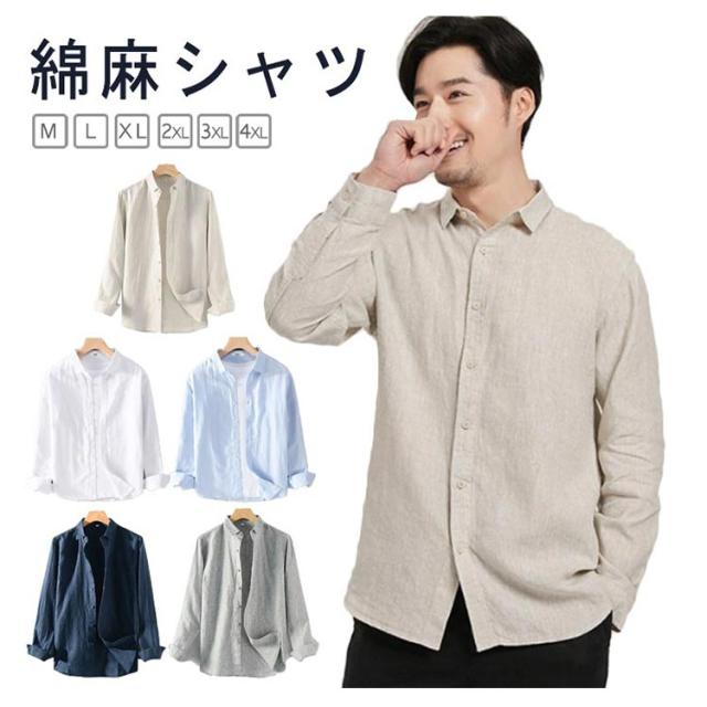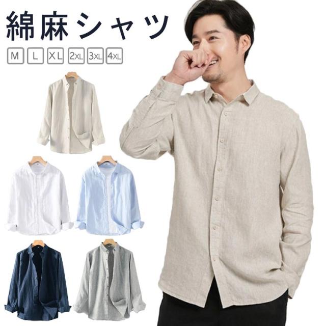 綿麻シャツ 夏 無地 メンズ リネンシャツ カジュアルシャツ ビジネス スタンドカラー ブラウス 麻シャツ レギュラーカラー シャツ トップス 薄手 涼しい UVカット 大きいサイズ コットン 綿 ライトアウター 春 綿麻シャツ 父の日 プレゼント