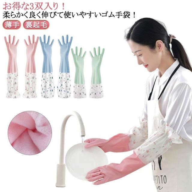 手袋 ロングスリーブ ブルー 3組セット ロンググローブ 薄手 ロングスリーブ ロング 作業用 食器洗い 3組セット グリーン 丈が長い おしゃれ ピンク 洗い物 裏起毛 ロング トイレ掃除 浴室掃除 クリーニング キッチン掃除 風呂掃除 洗車 漬物 トイレ掃除 浴室掃除
