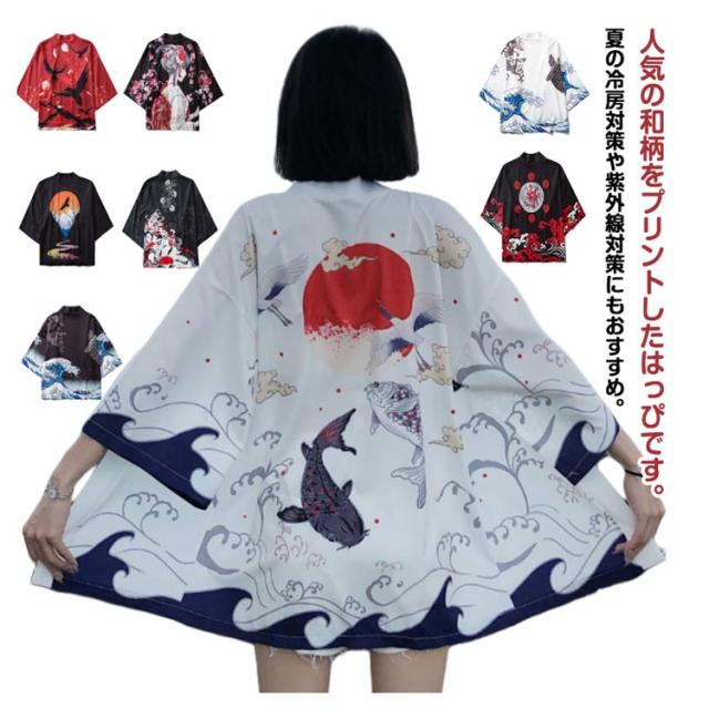 甚平 羽織り メンズ はっぷ 大人 桜柄 鶴柄 半纏 七分袖 イベント 法被 ユニセックス サマーカーディガン アウター お祭り ハッピ レディース はんてん 法被 ダンス コスプレ コスチューム 和装 和柄 おしゃれ トップス 部屋着 春夏