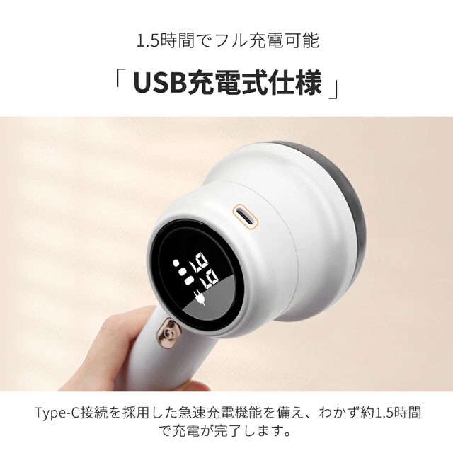 春新作 毛玉取り 電動 毛玉クリーナー けだまとり USB充電式 6枚刃 高速回転 生地を傷めない LEDディスプレー 替え刃付き