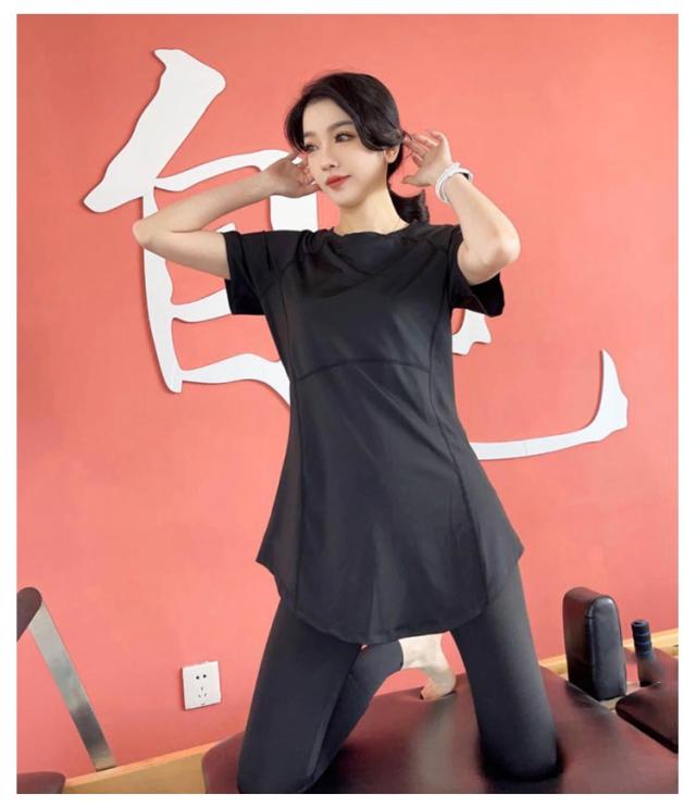 体カバー ヨガウェア ヨガウェア トップス 半袖 ロング丈 上下セット ボトム 体型カバー セットアップ 長め ヨガ トップス レディース スポーツウェア チュニック ヨガウエア おうちヨガ フィットネスウェア ピラティスウェア 半袖 ヨガウェア ピラティス