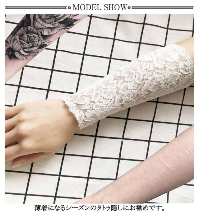 黒 傷跡かくし タトゥー隠し 傷跡隠す 二の腕サポーター レース ラッシュガード 2組4枚セット 肌色 刺青隠し アームガード ショート 接触冷感 日焼け対策 隠すサポーター 通気性 ストレッチ ブラック 二の腕カバー tatoo 肌色サポーター