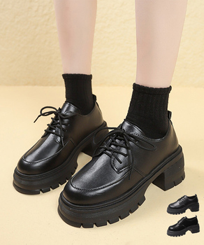 厚底ローファーレディース太ヒールパンプス