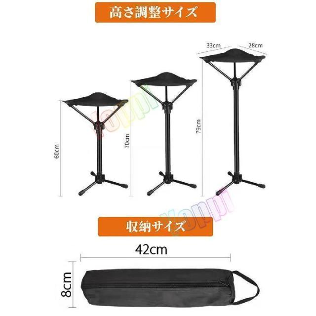 アウトドアチェア折りたたみ椅子キャンプチェアモバイルチェアスタンディングチェア耐荷重150KGコンパクト伸縮式高さ調整超軽量持ち運び便利3本脚