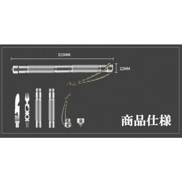 屋外 多機能 護身術スティック ナイフ フォークのセット コンパス フィールド サバイバル ツールカー キャンプ用食器 アウトドア◆材質:合金