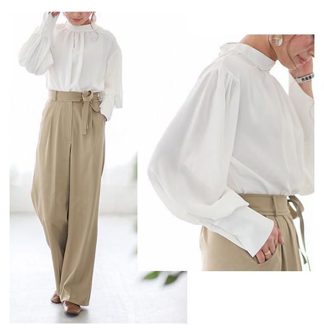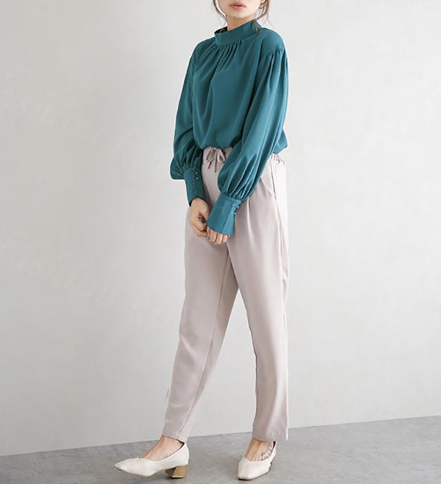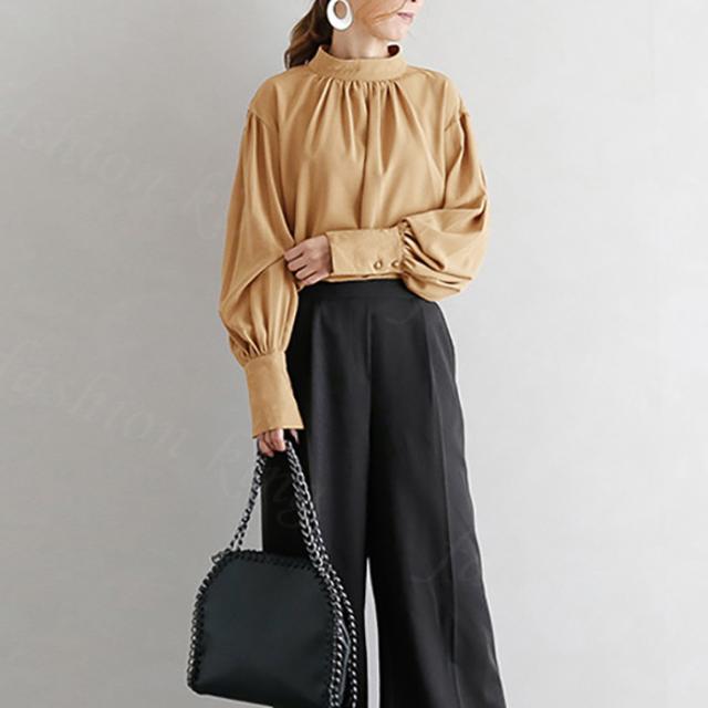 バルーンスリーブブラウス 秋冬 春新作 送料無料 レディース ギャザー ブラウス バルーンスリーブ バルーン袖 バルーンブラウス とろみ 春 クラシカル 長袖 ボリューム袖
