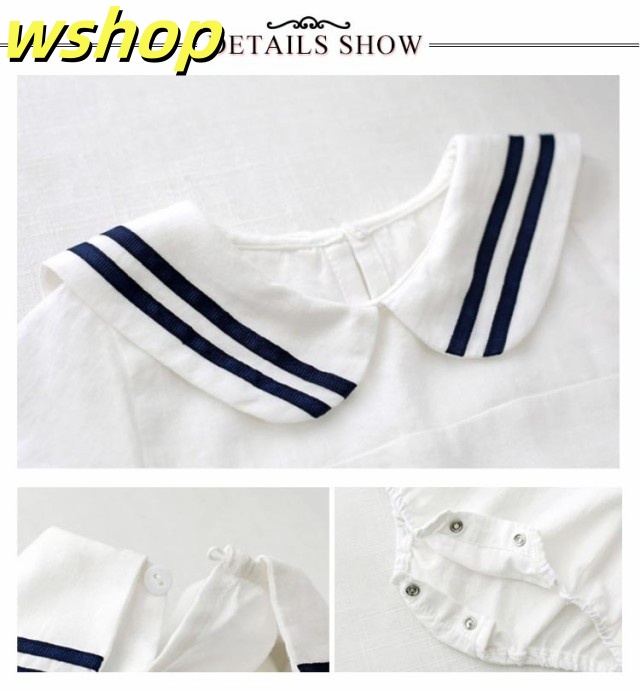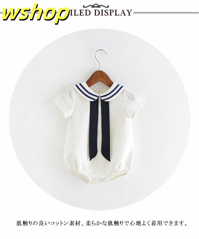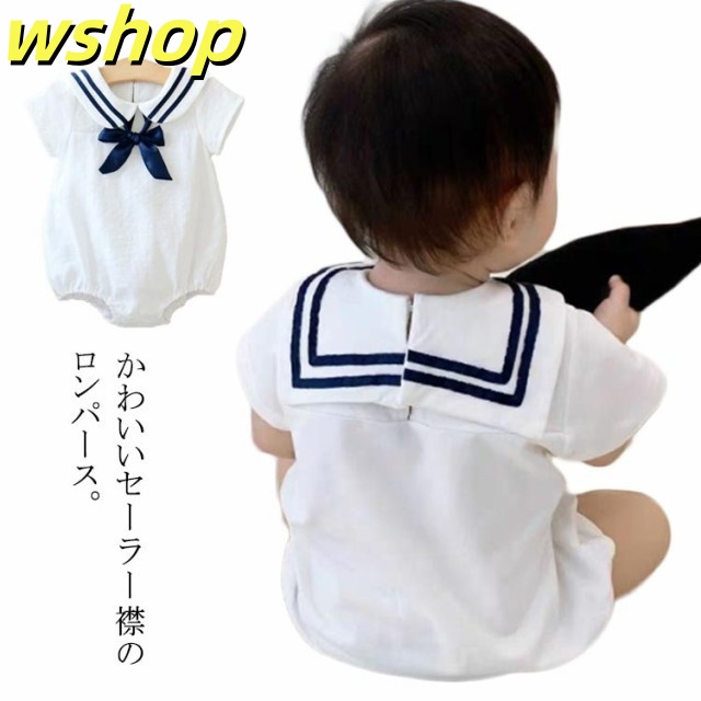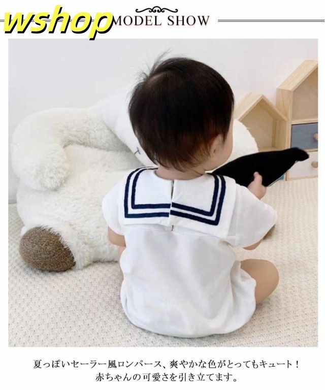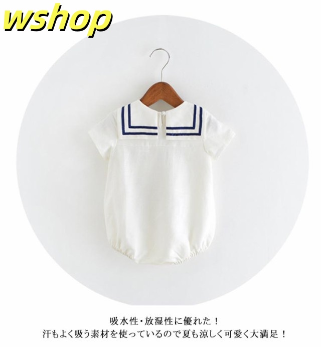 【wshop 】コットン 80 カバーオール セーラー衿 男の子 セーラー襟 薄手 襟付き 赤ちゃん 綿 ベビー 半袖 ロンパース 子供服 ベビー服 つなぎ 紺 夏 出産祝い セーラーカラーロンパース 白 新生児 ホワイト おしゃれ かわいい 春夏 66 73 女の子