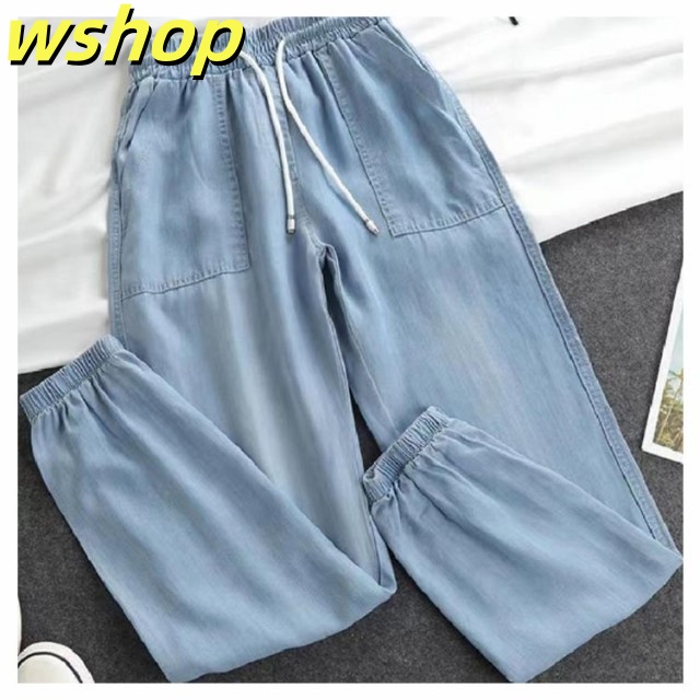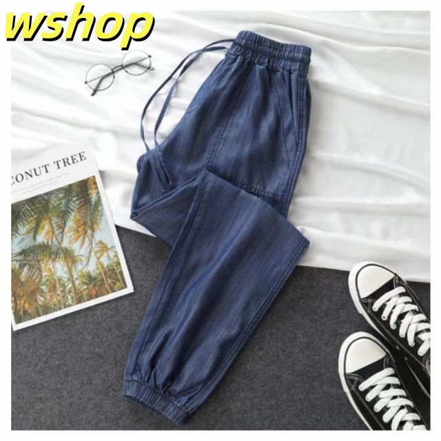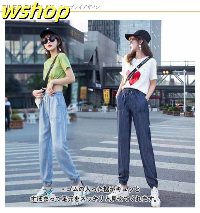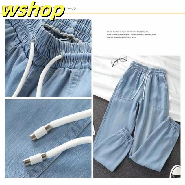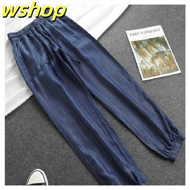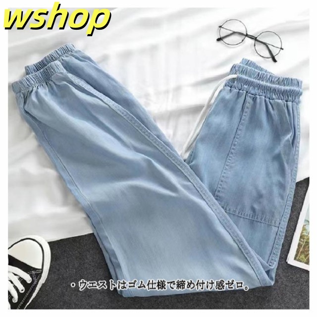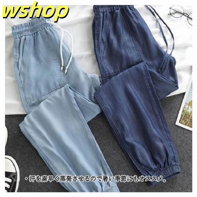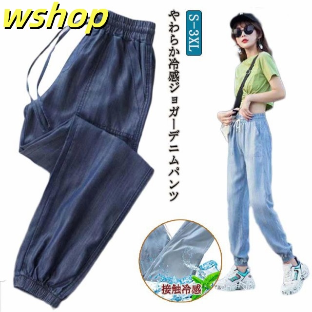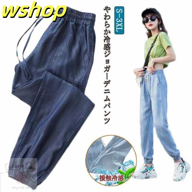 家中時間充実化 毎日使える便利品 細身 ジーパン パンツ 【wshop ひんやり レディース デニムパンツ スリム ジーンズ 涼しい 夏用 収納便利 】ジョガーパンツ ランキング常連 接触冷感 ウェストゴム イージーパンツ 冷感 送料無料 即納対応中