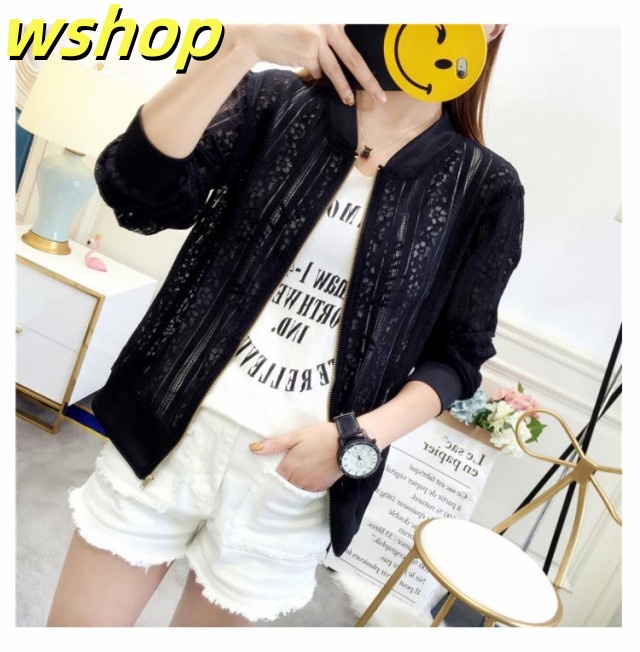 軽量仕様 売上急増中 ジップアップレースブルゾン 冷房対策 トップス 薄手 ショート UV対策 透け ブルゾン 】ノーカラージャケット レース 【wshop 大人カジュアル レディース ライトアウター スリム 上品 シアー 細身 透け感 在庫わずか