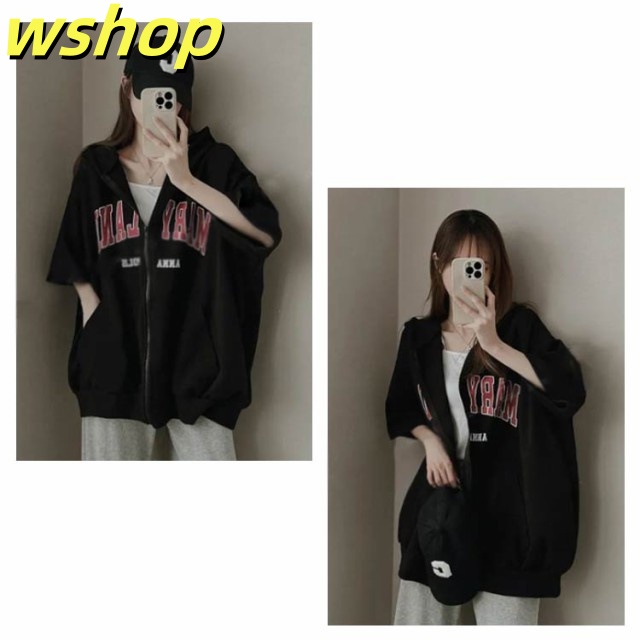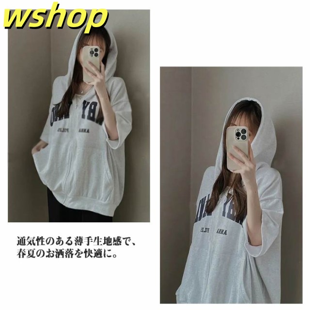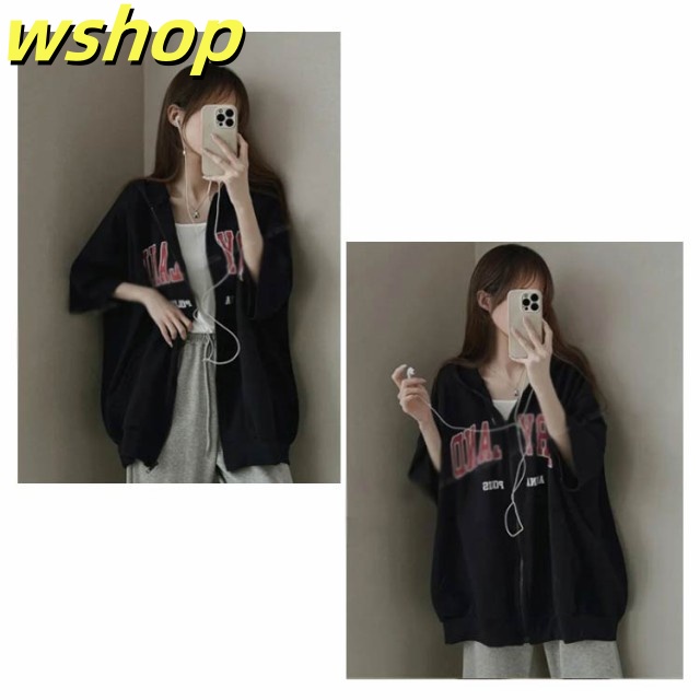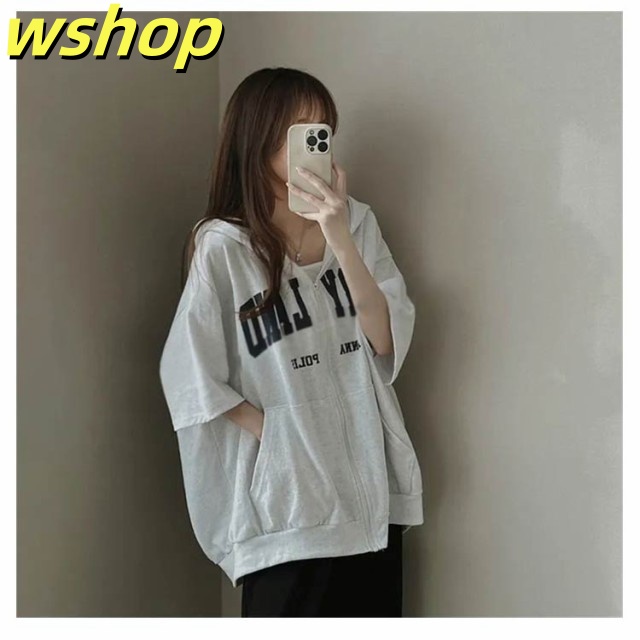 【wshop 】レディース ライトアウター 春夏 ジップアップパーカー 薄手 前開き ジップアップ 羽織り 半袖パーカー トップス ジップアップパーカー ジップ フルジップ フード付き 半袖 パーカー サマーパーカー カーディガン レイヤード フーディー スウェットパーカー