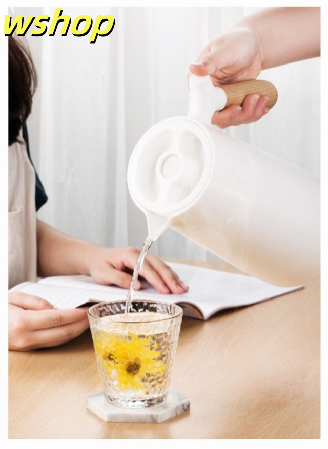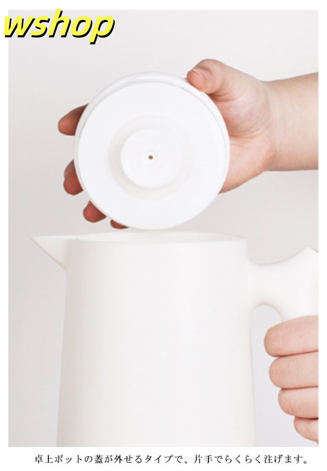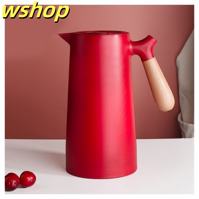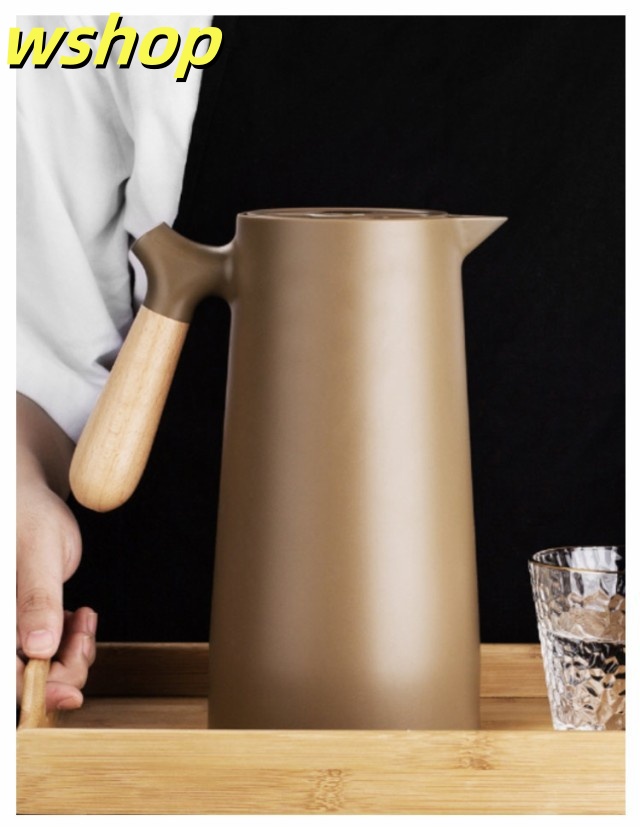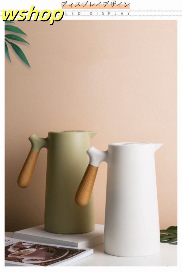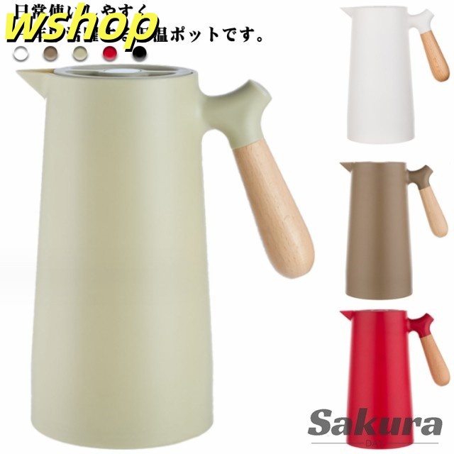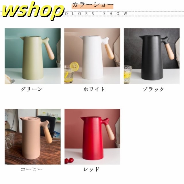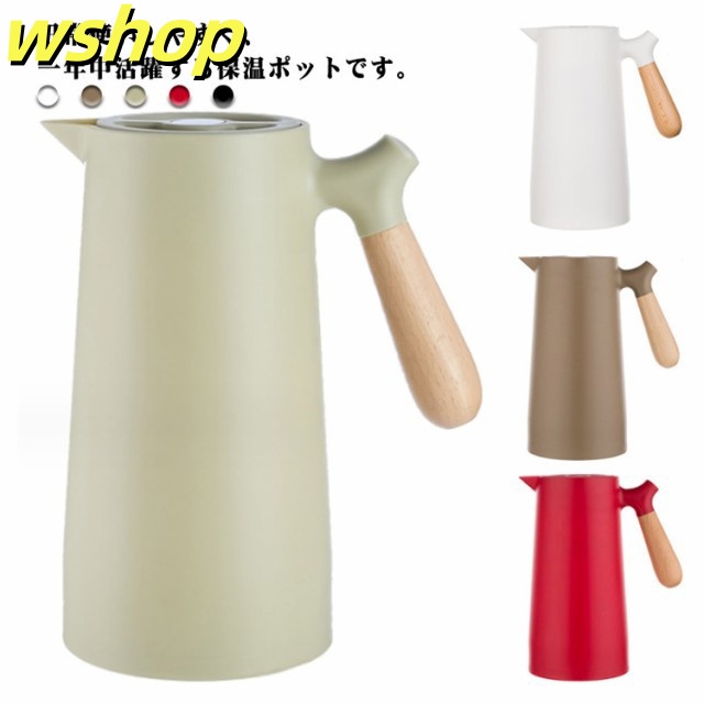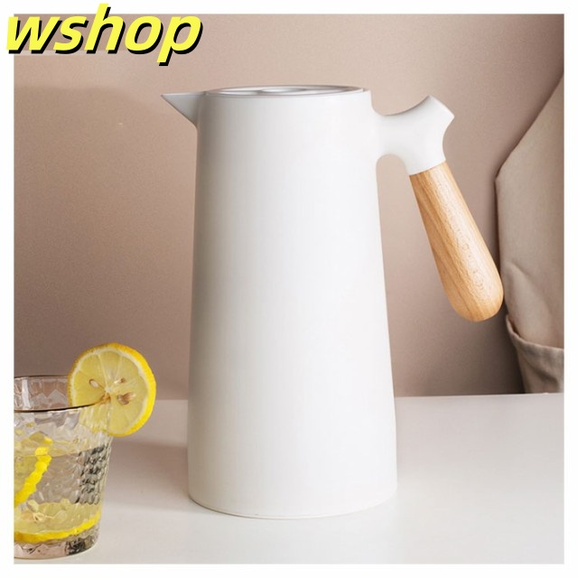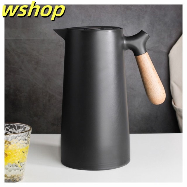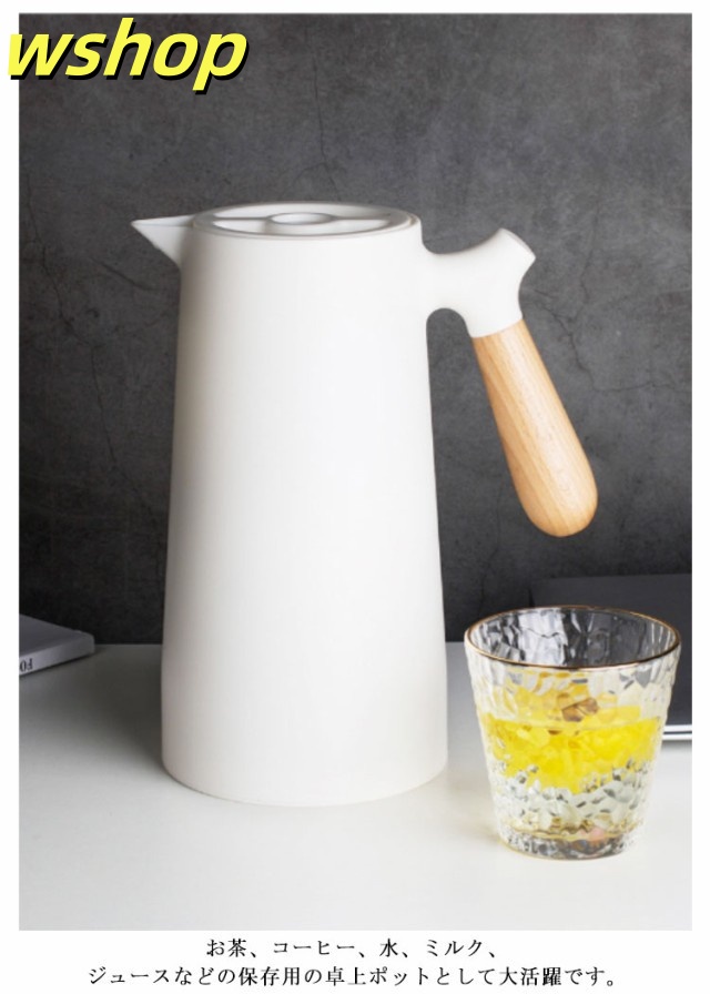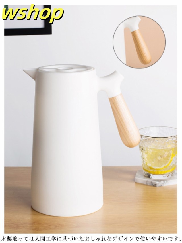 軽量仕様 売上急増中 1L 大容量 プレゼント 【wshop 保冷ポット 卓上ポット 保温ポット コーヒーポット おしゃれ 魔法瓶 リビングポット ピッチャー 木製のハンドル 】テーブルポット 真空構造 真空断熱 注ぎやすい 北欧 今だけ限定