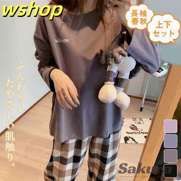 レビュー高評価商品 品質安心 【wshop チェック柄 レディース 】パジャマ 長ズボン 収納便利 ルームウェア 長袖春秋 売上急増中 セットアップ 可愛い 部屋着 上下セット 今だけ 寝間着 女性 パンツ 長袖 Tシャツ お買い得プライス